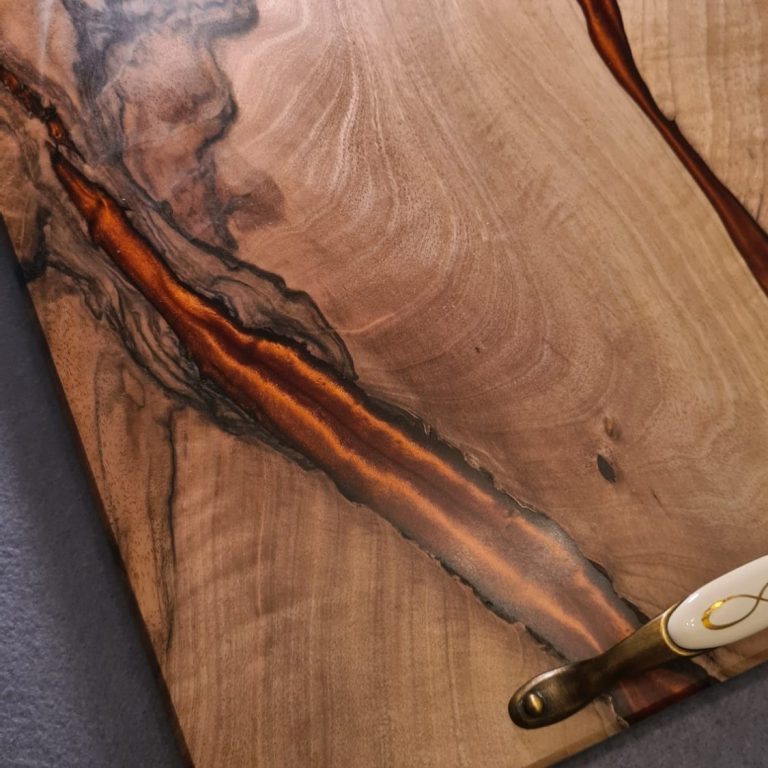 Schneidebretter oder Serviertabletts aus edlen Holzarten mit einem extra Hingucker aus Epoxidharz in Ihrer Lieblingsfarbe - persönlicher und einzigartiger kann man nicht beschenkt werden!